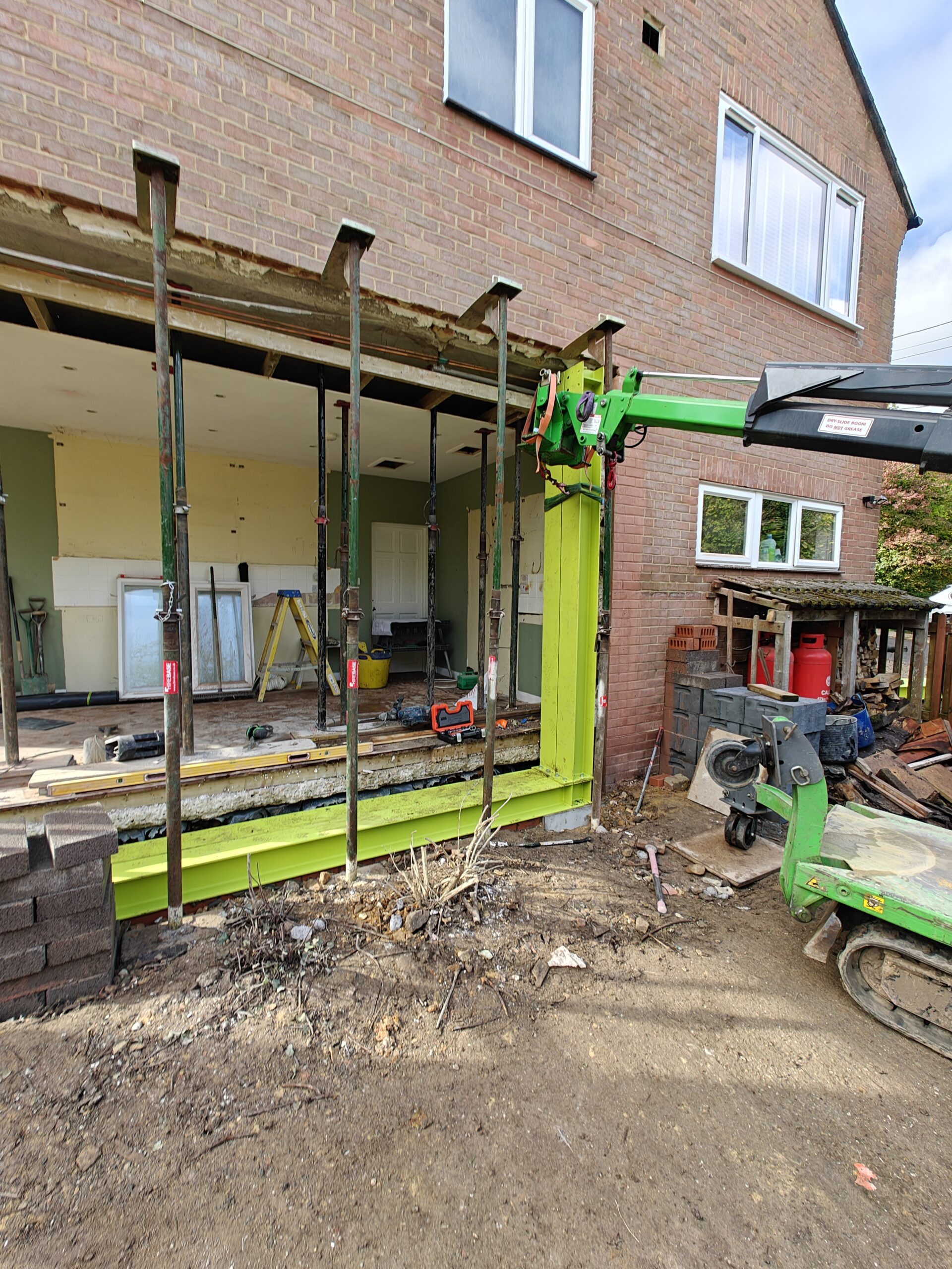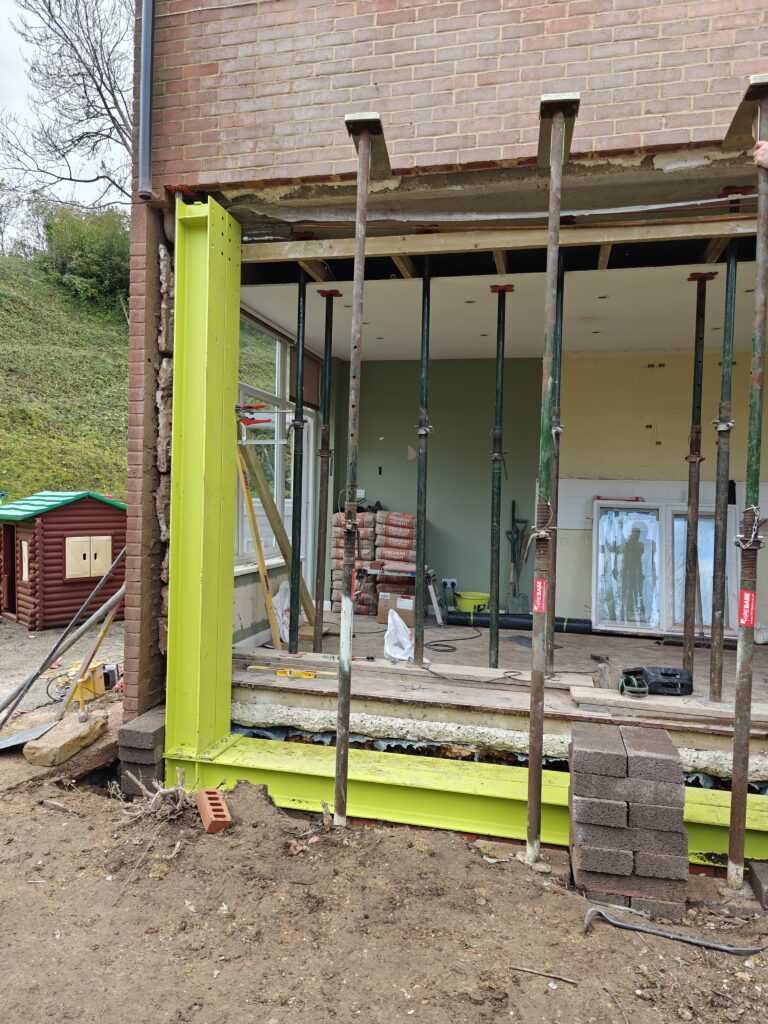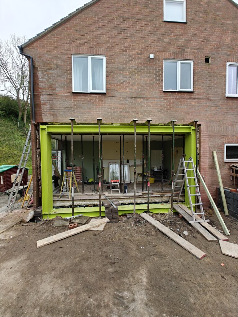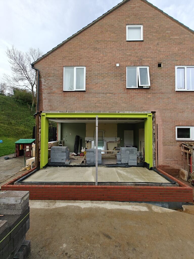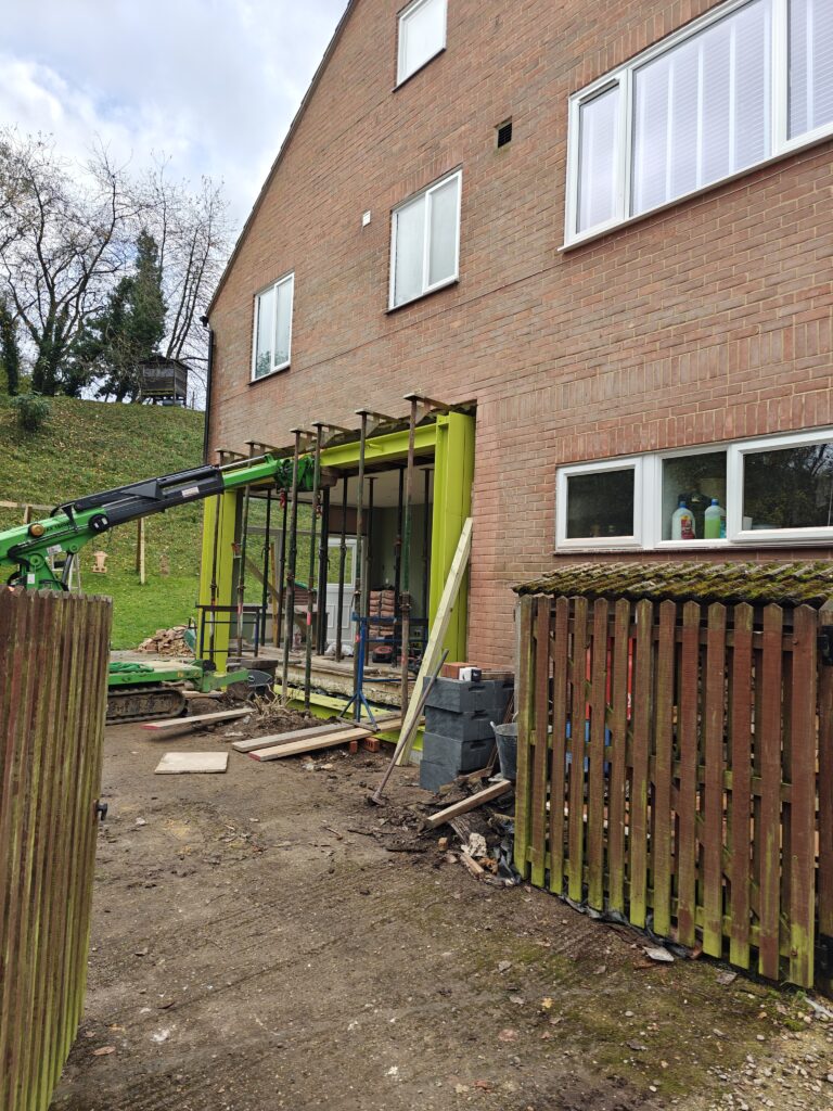 Rear extension, removal of existing brick and block wall and installation of steelwork.