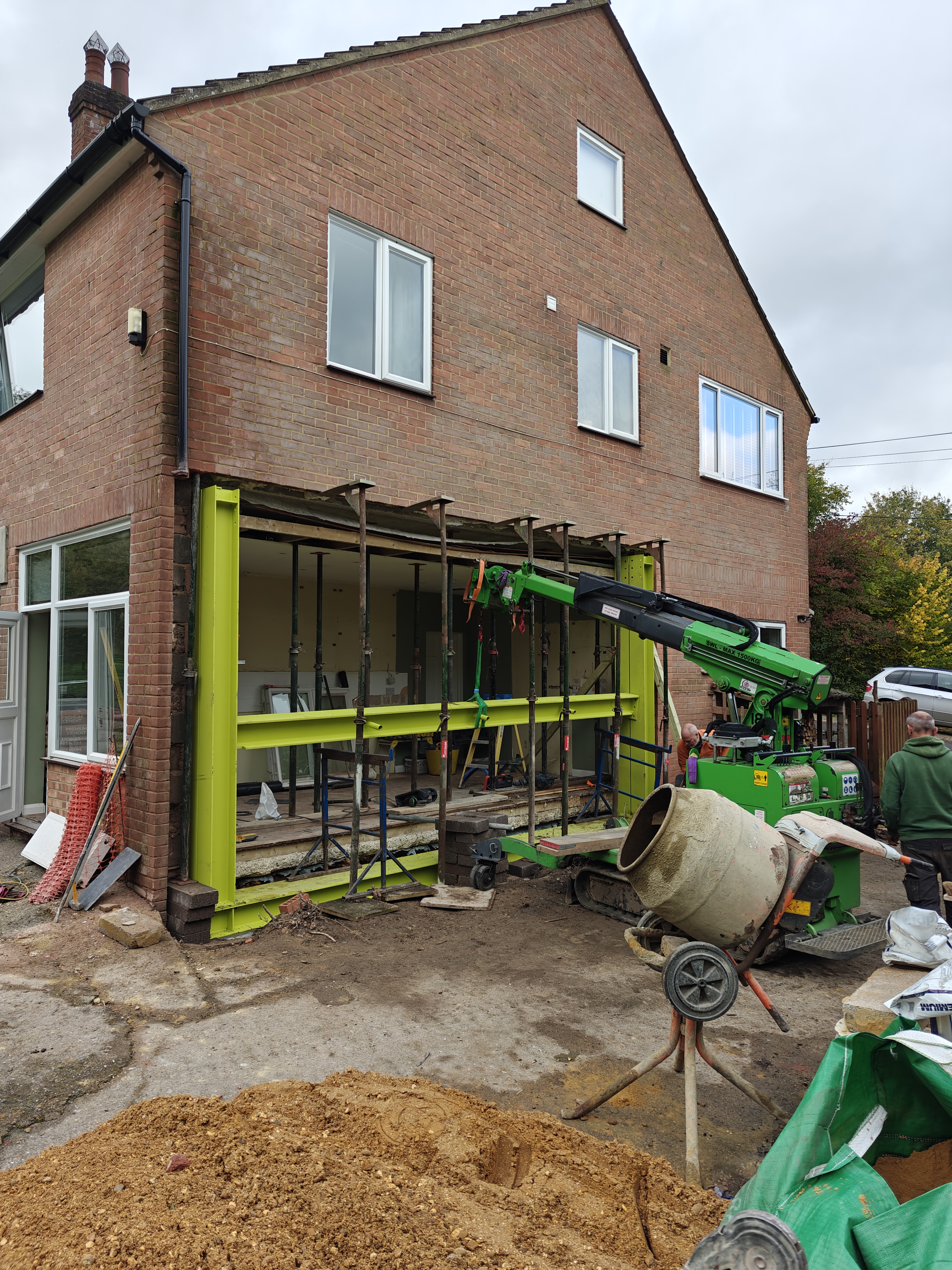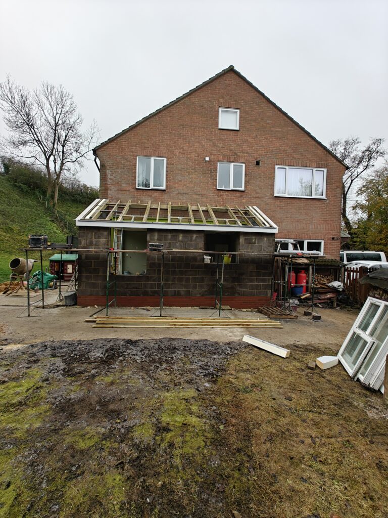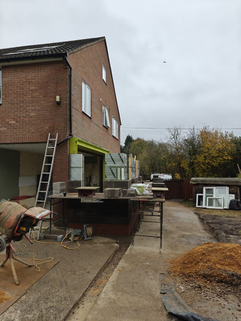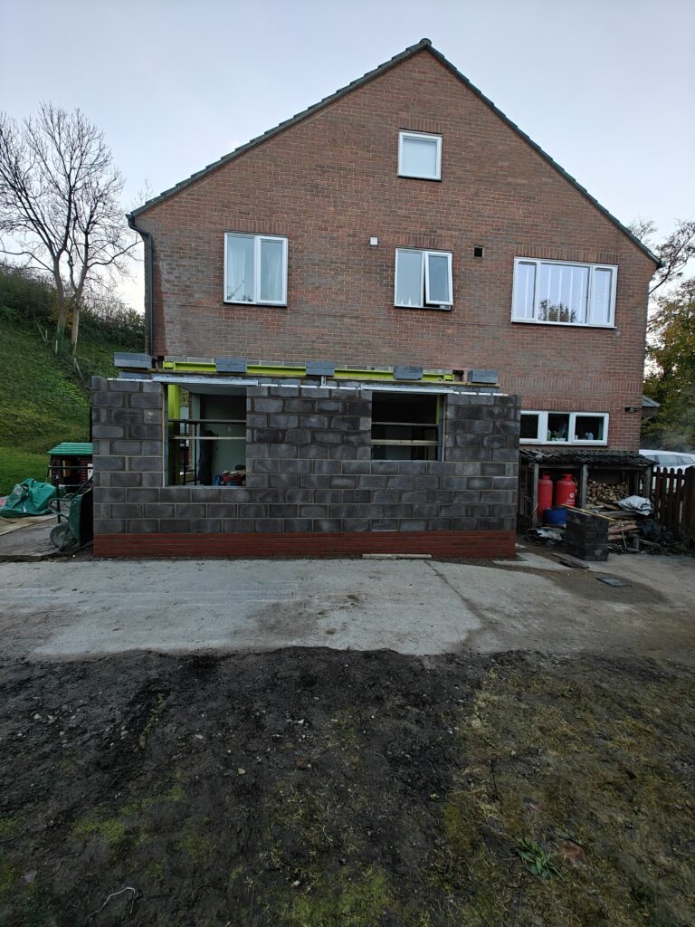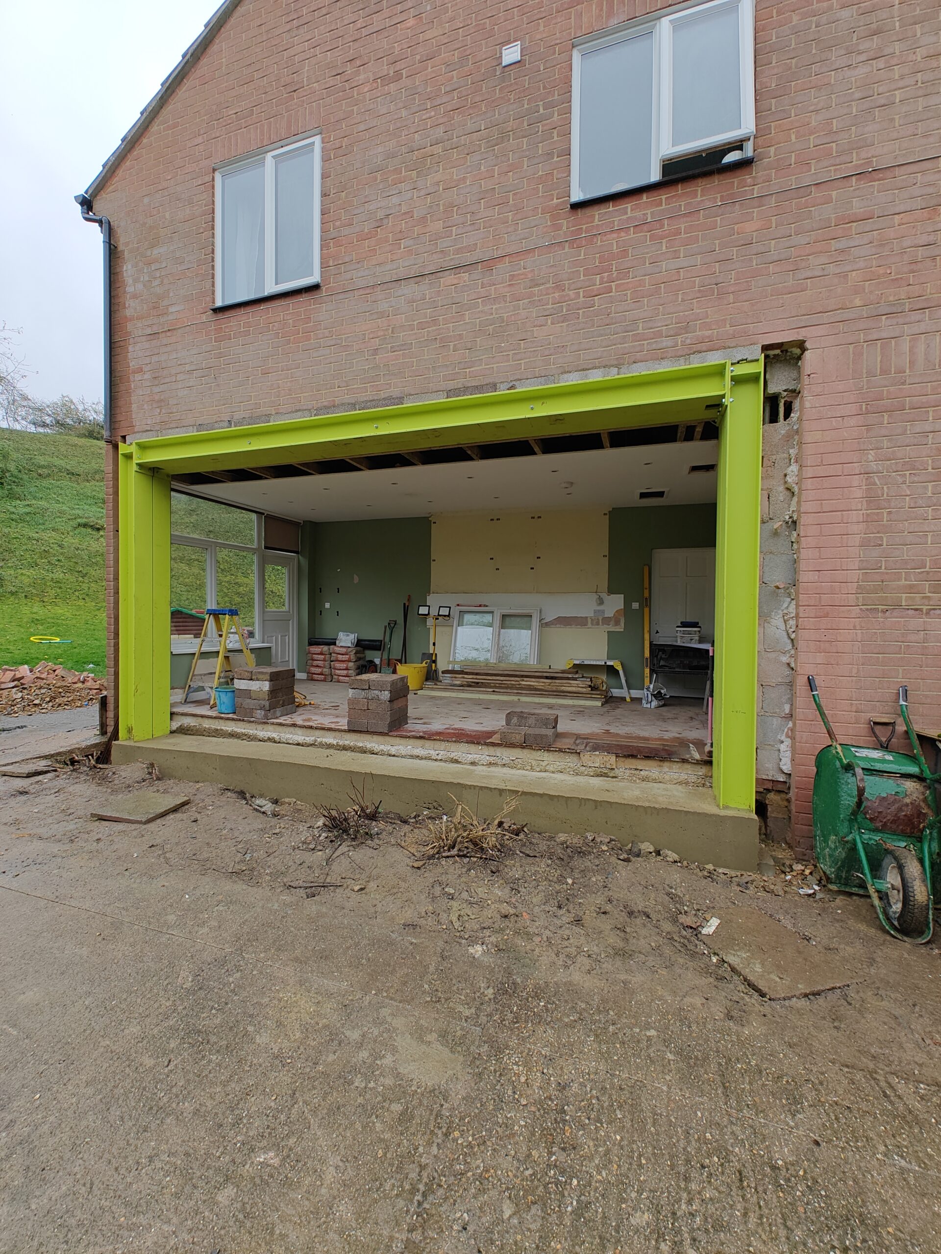 Rear extension, removal of existing brick and block wall and installation of steelwork.