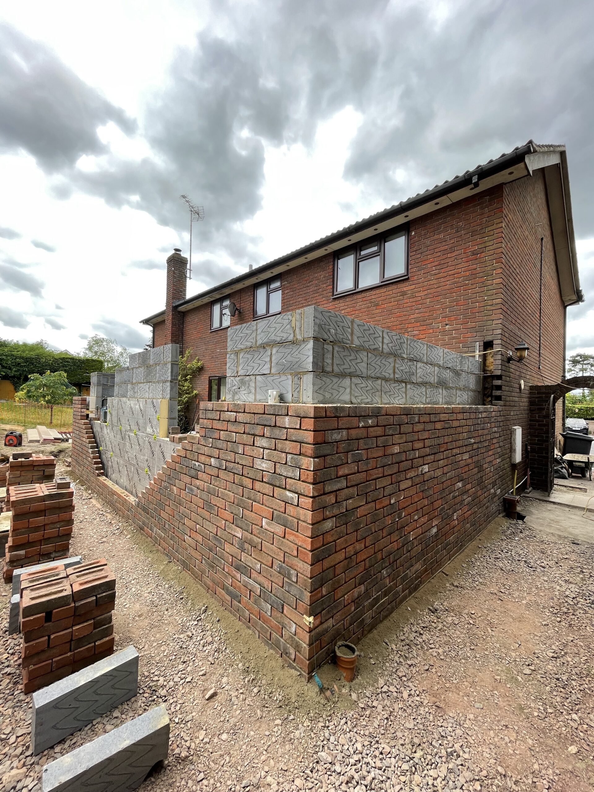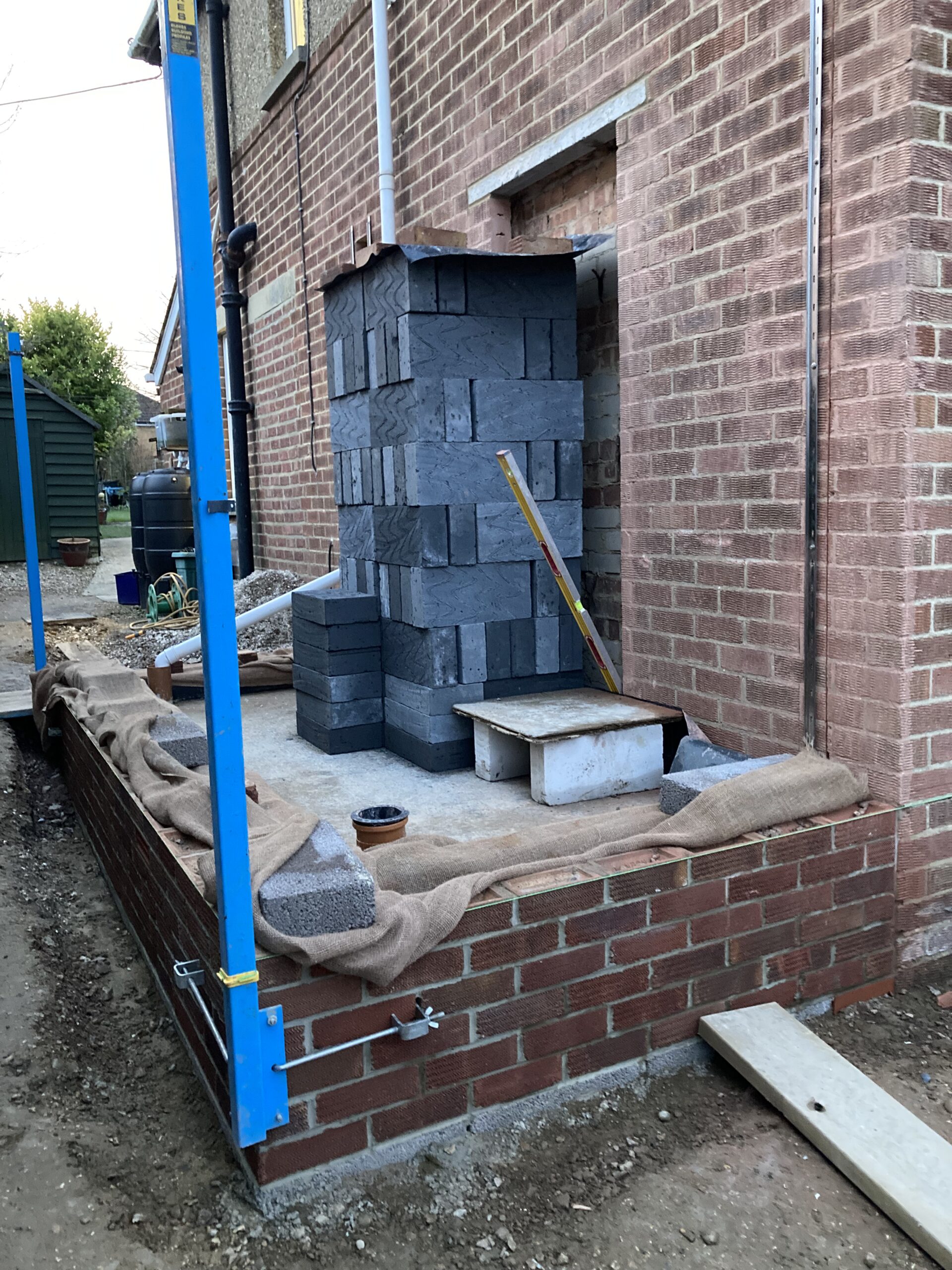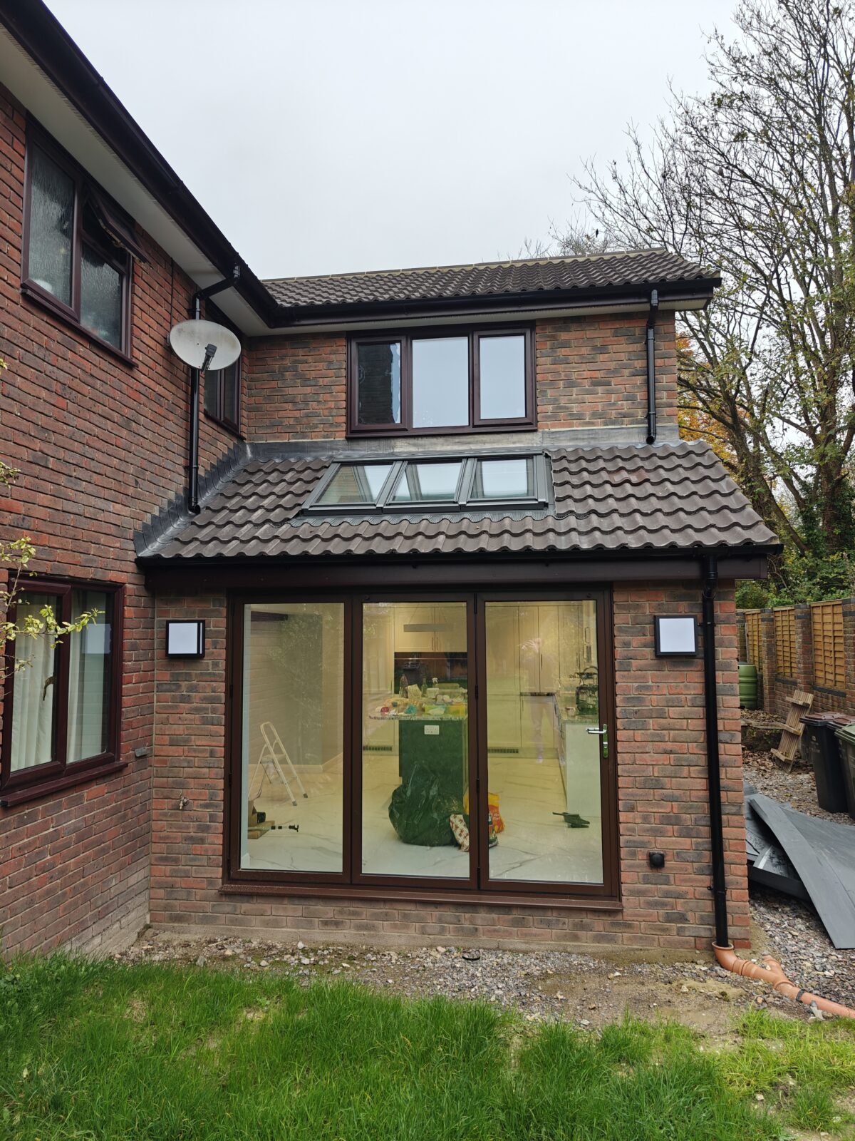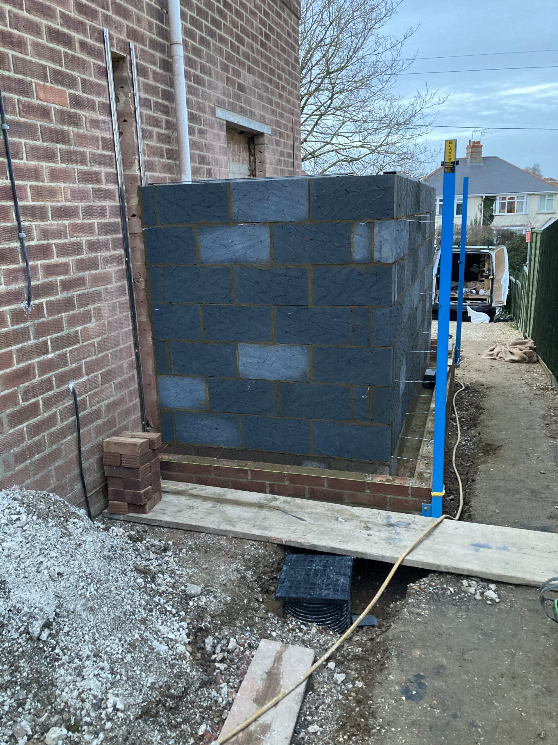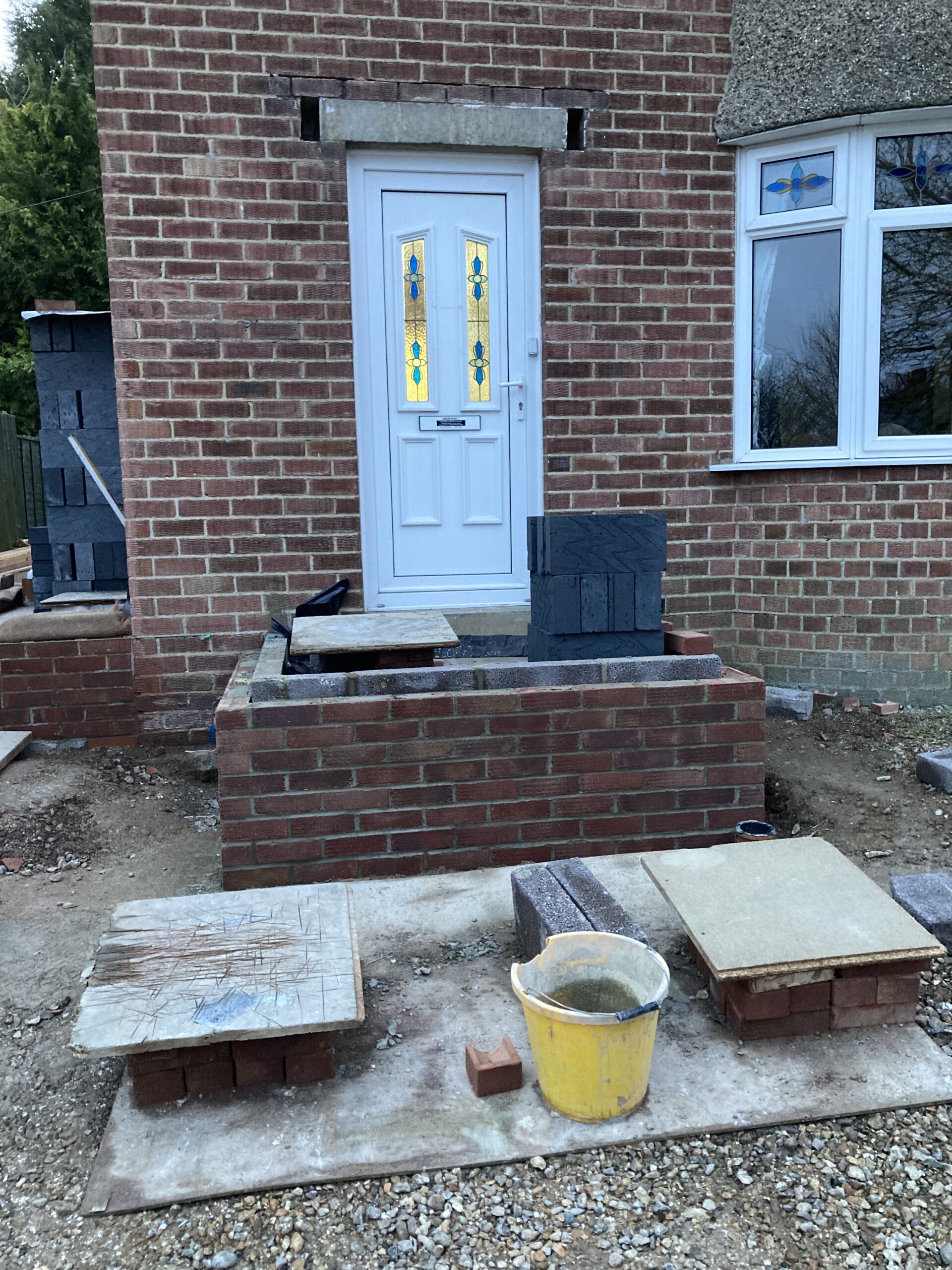 Rear extension, alterations to existing brickwork and installation of steel beam for bifold door. Preparation and laying of porcelain patio.