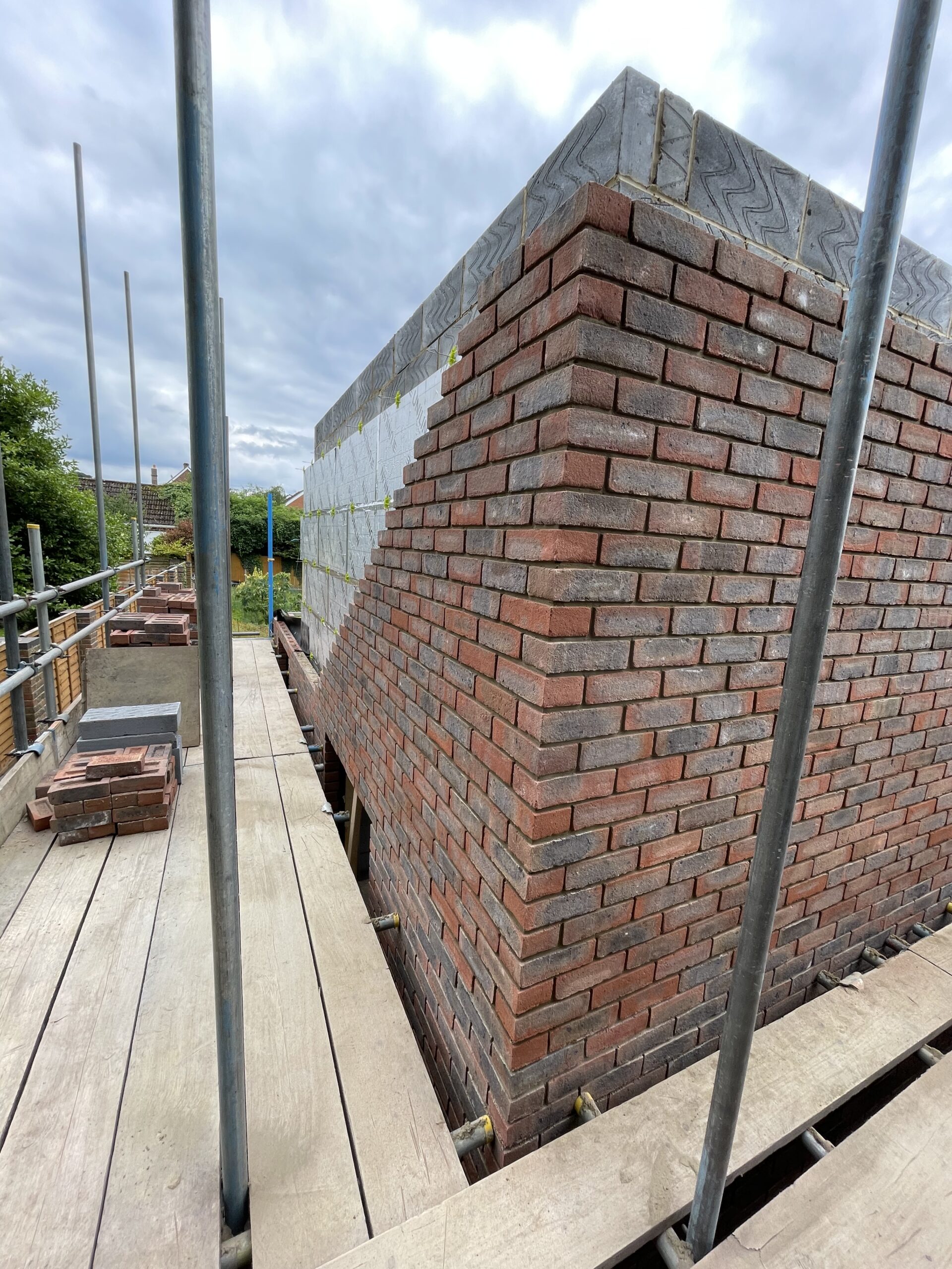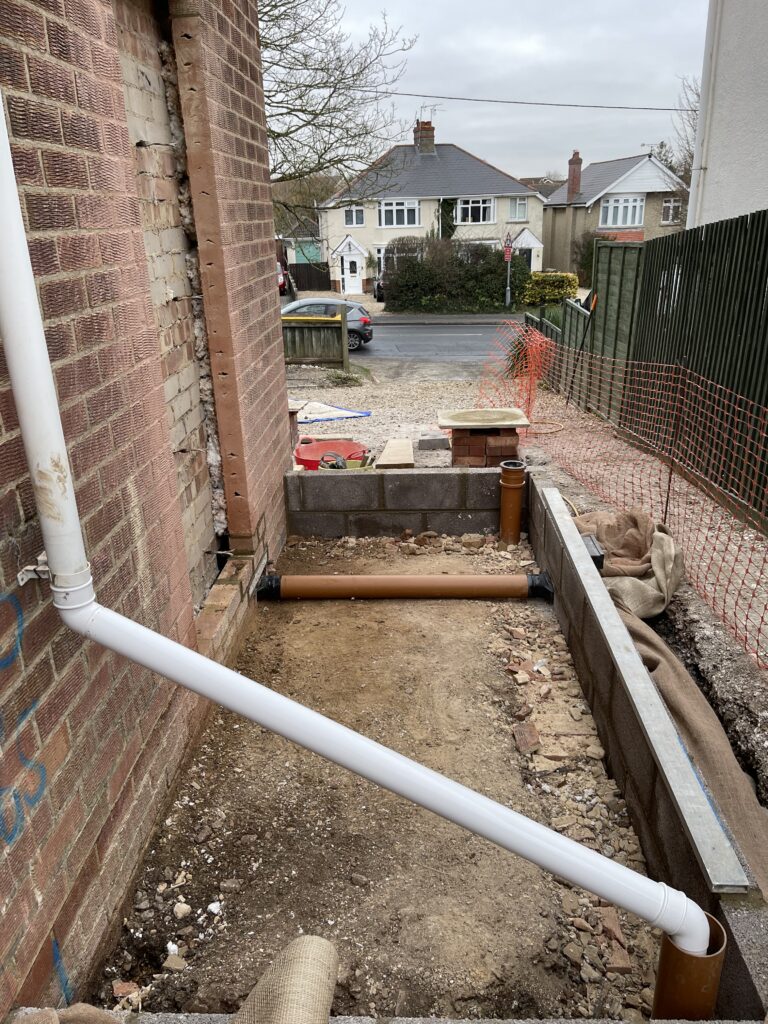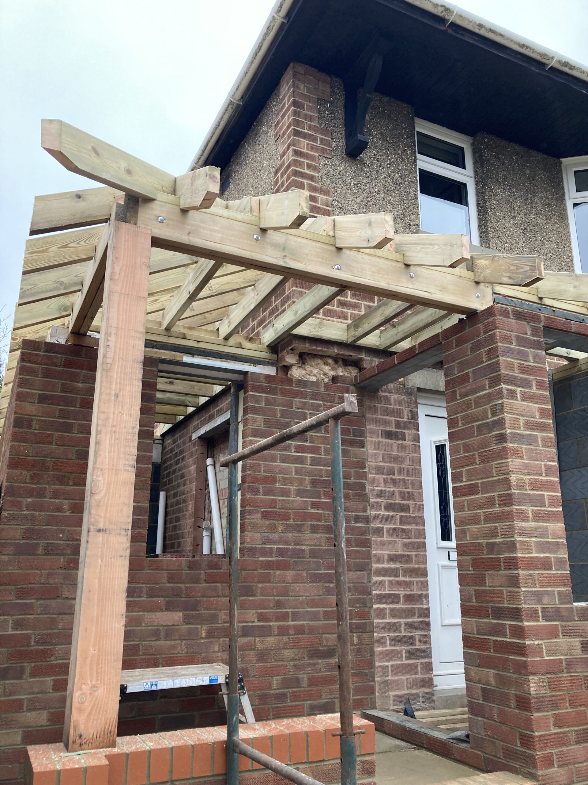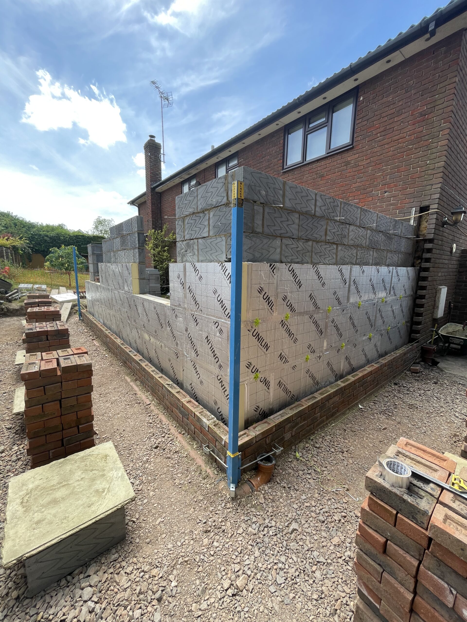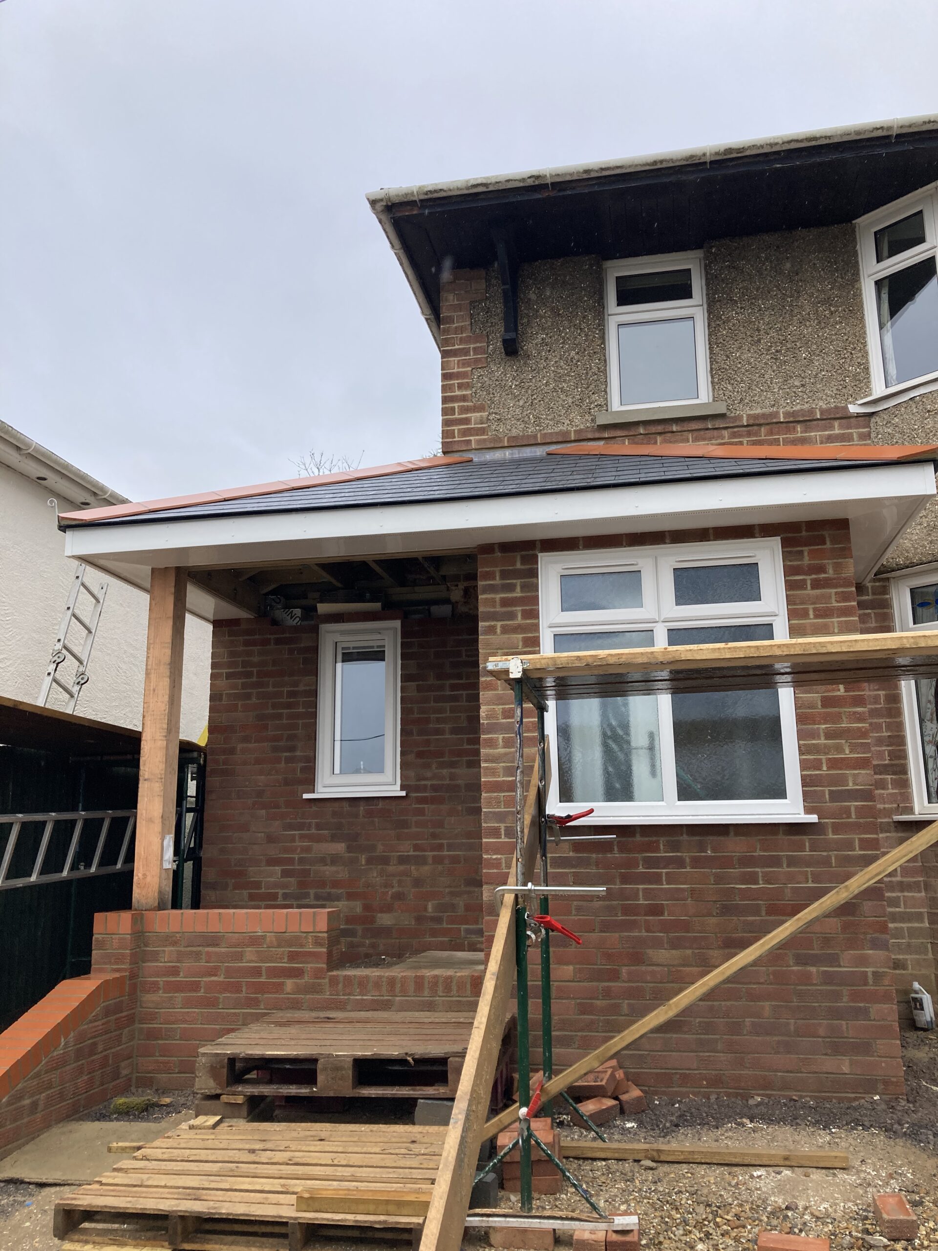 Rear extension, alterations to existing brickwork and installation of steel beam for bifold door. Preparation and laying of porcelain patio.