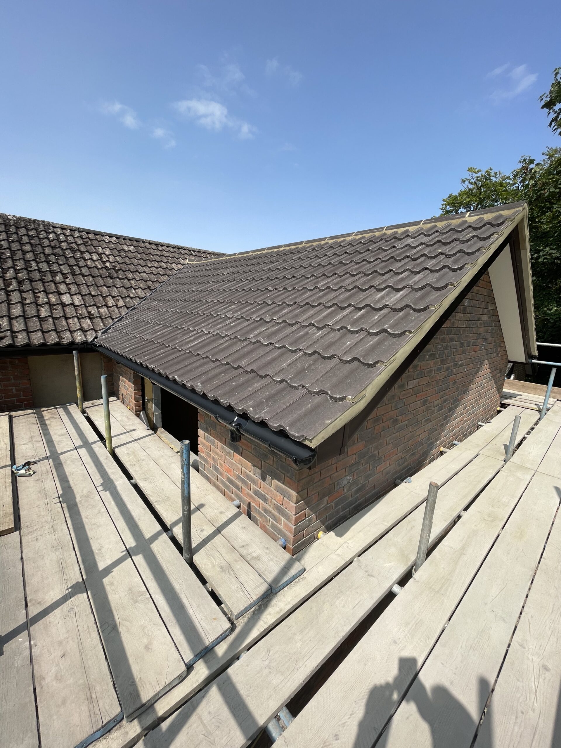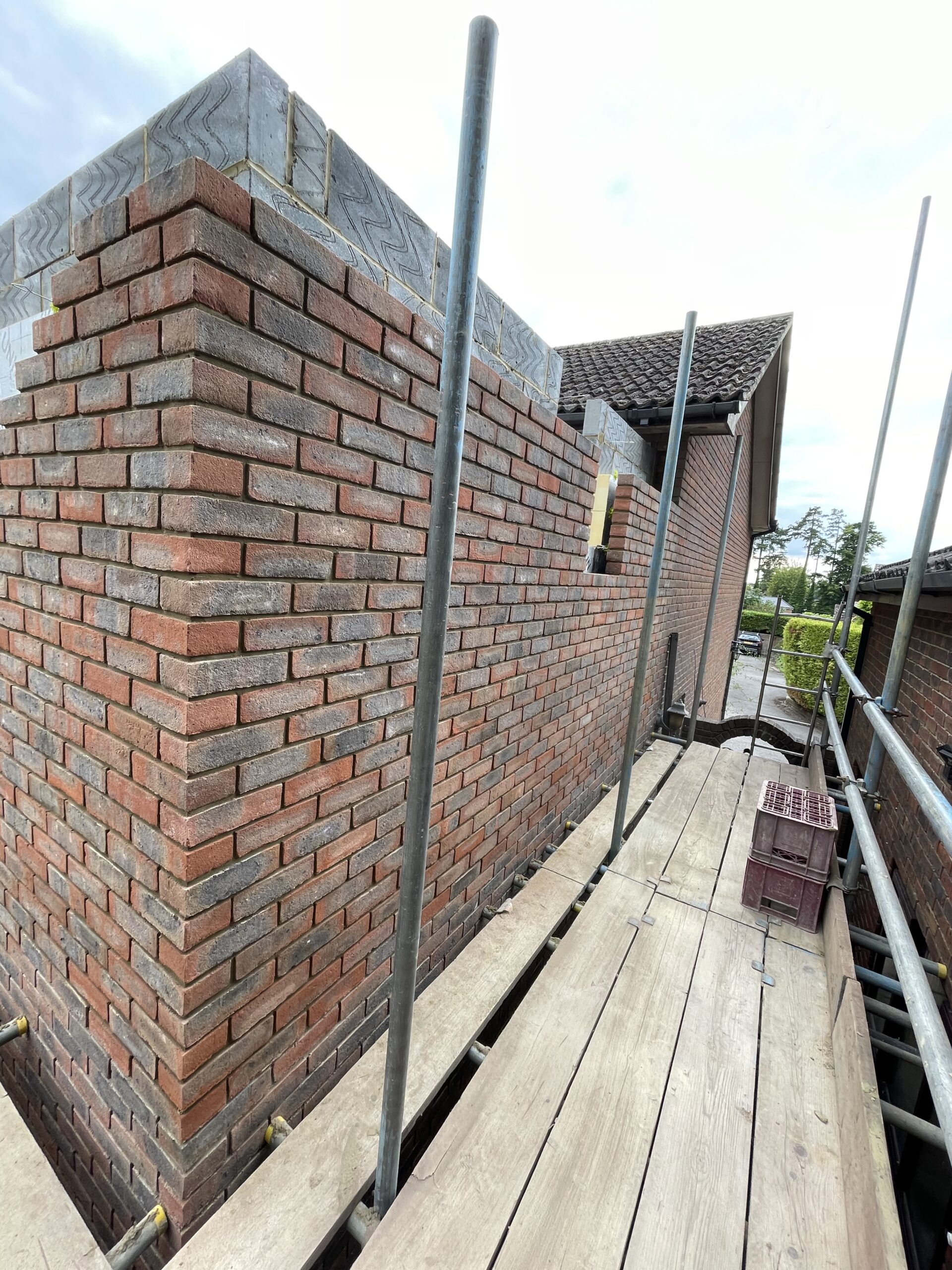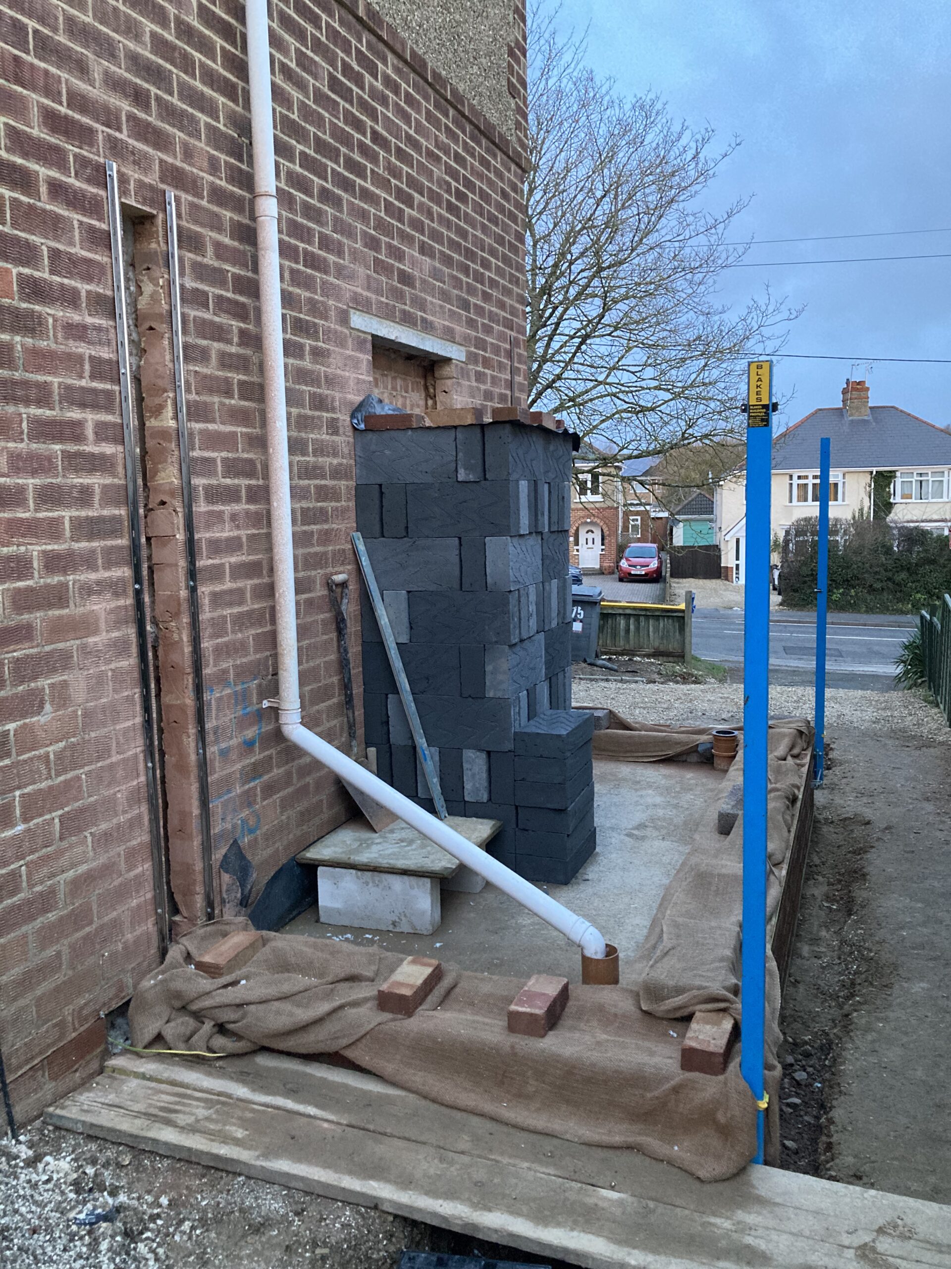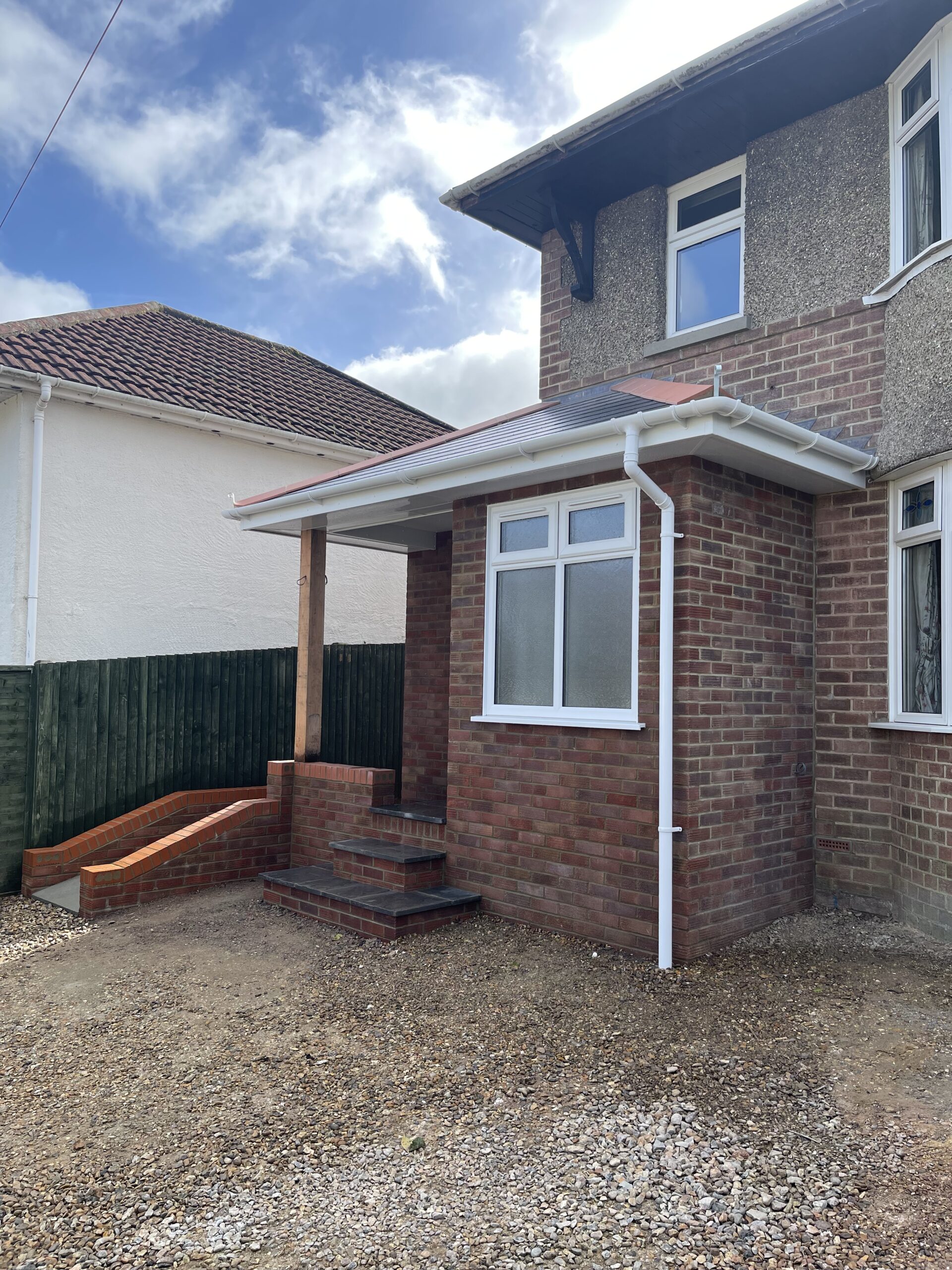 Rear extension, alterations to existing brickwork and installation of steel beam for bifold door. Preparation and laying of porcelain patio.