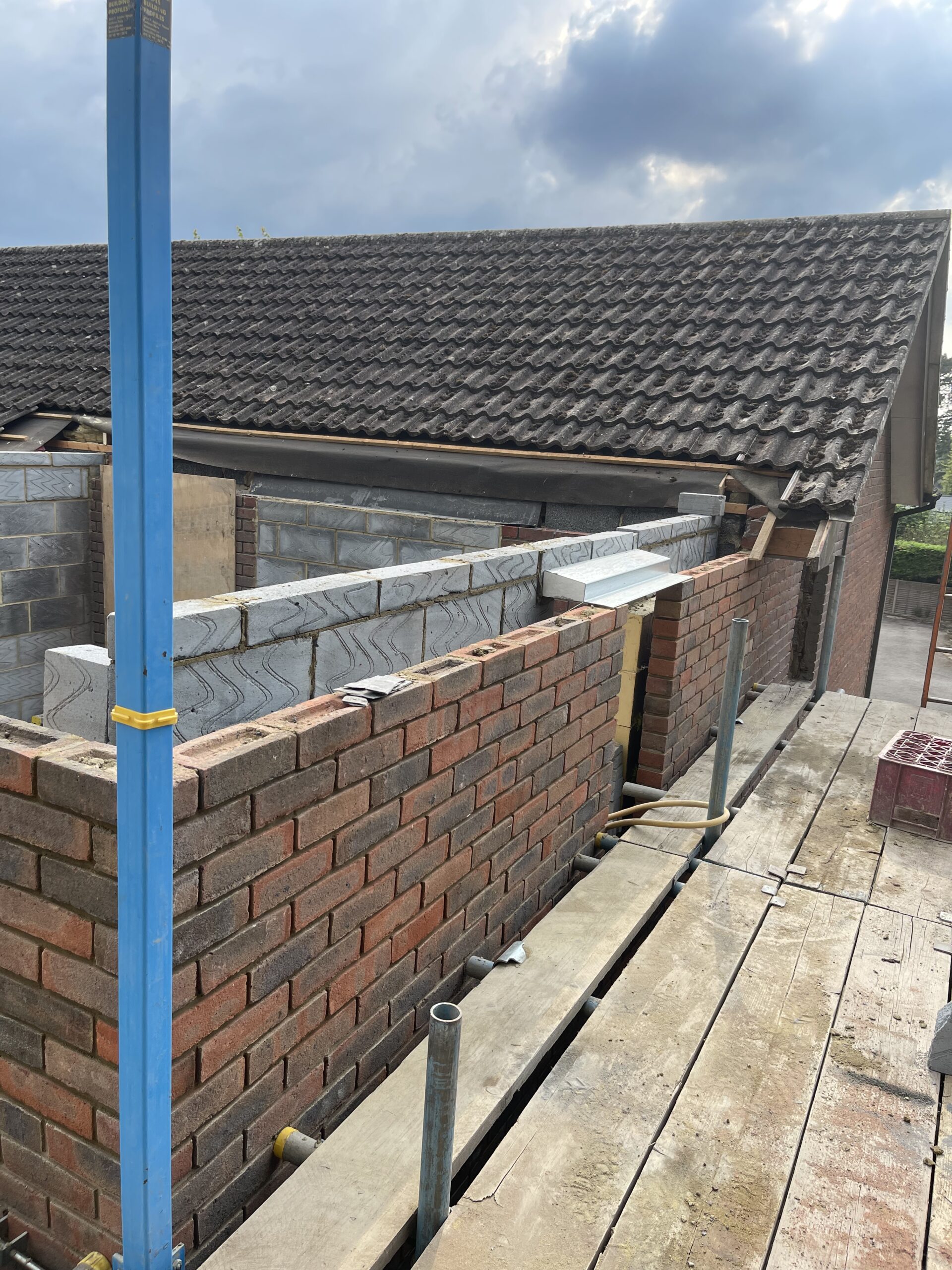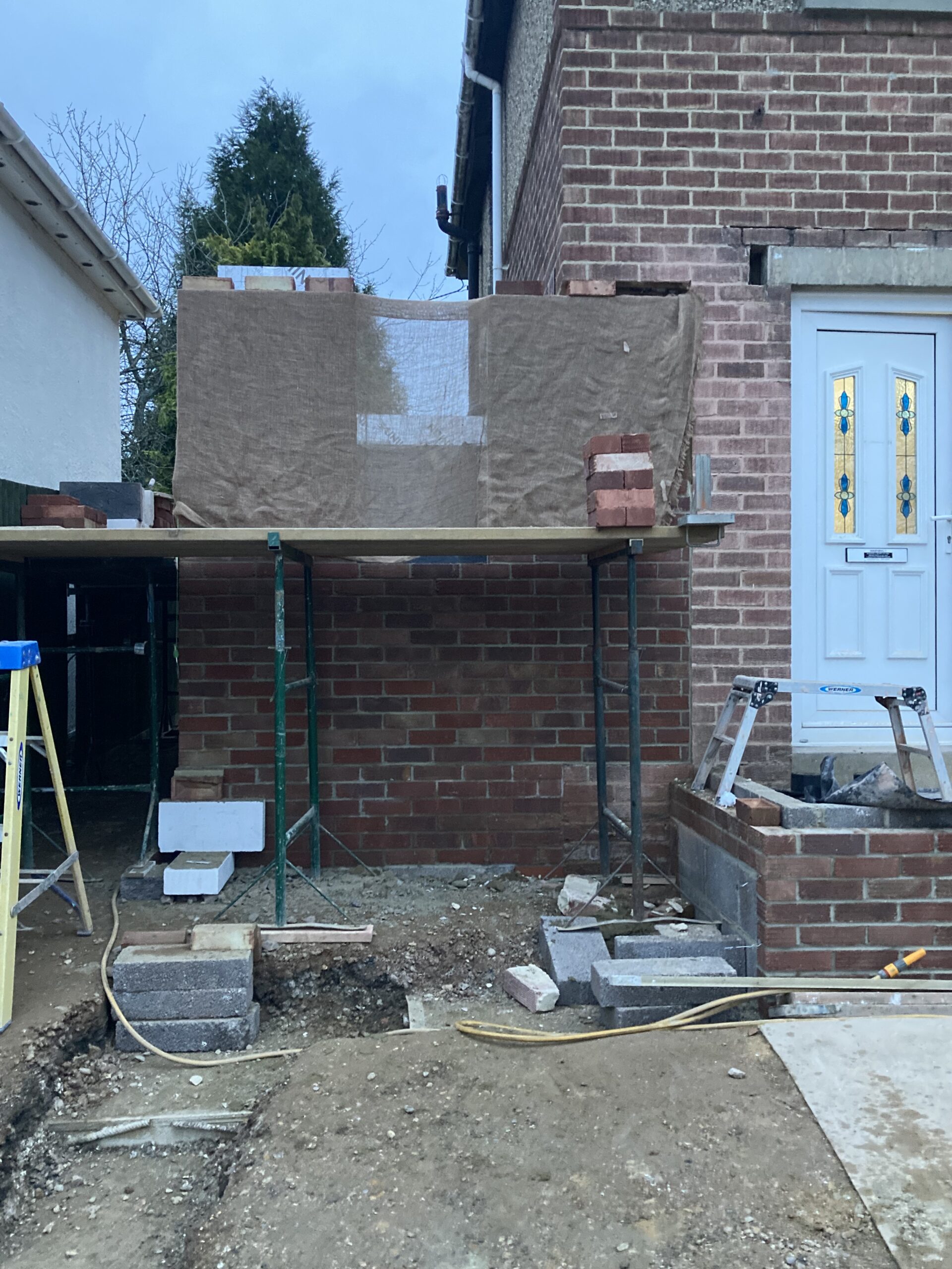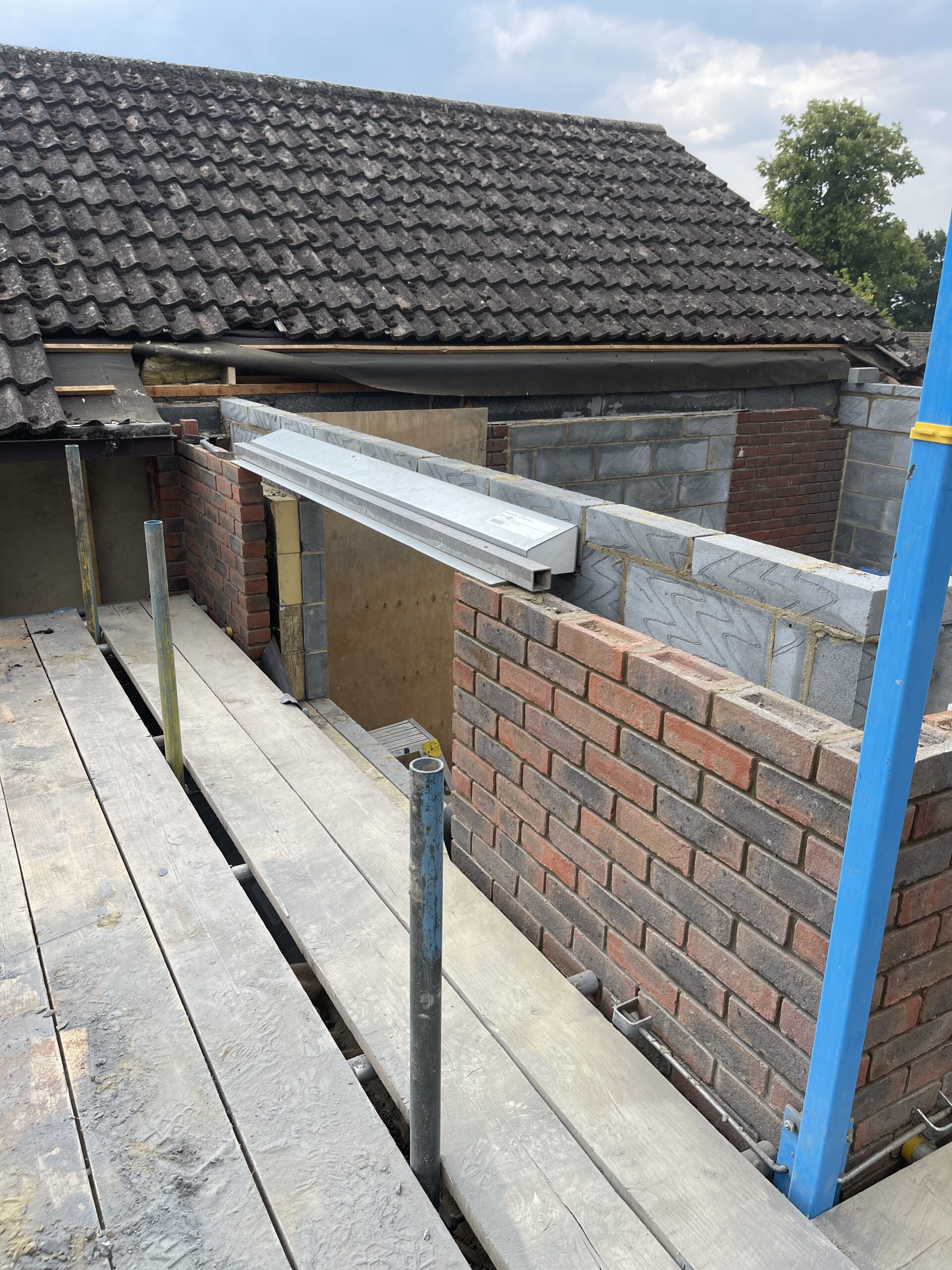Rear extension, removal of existing brick and block wall and installation of steelwork.