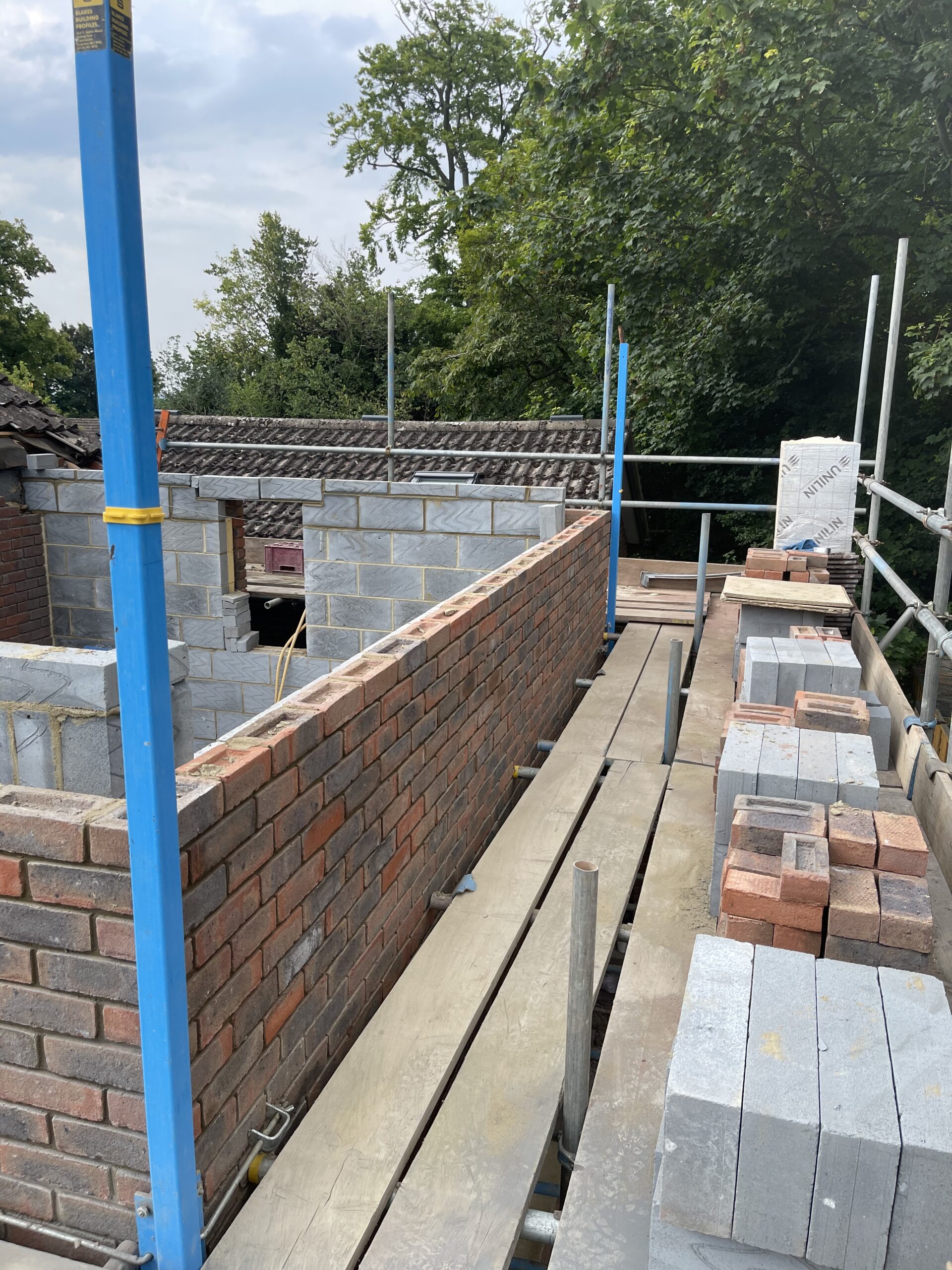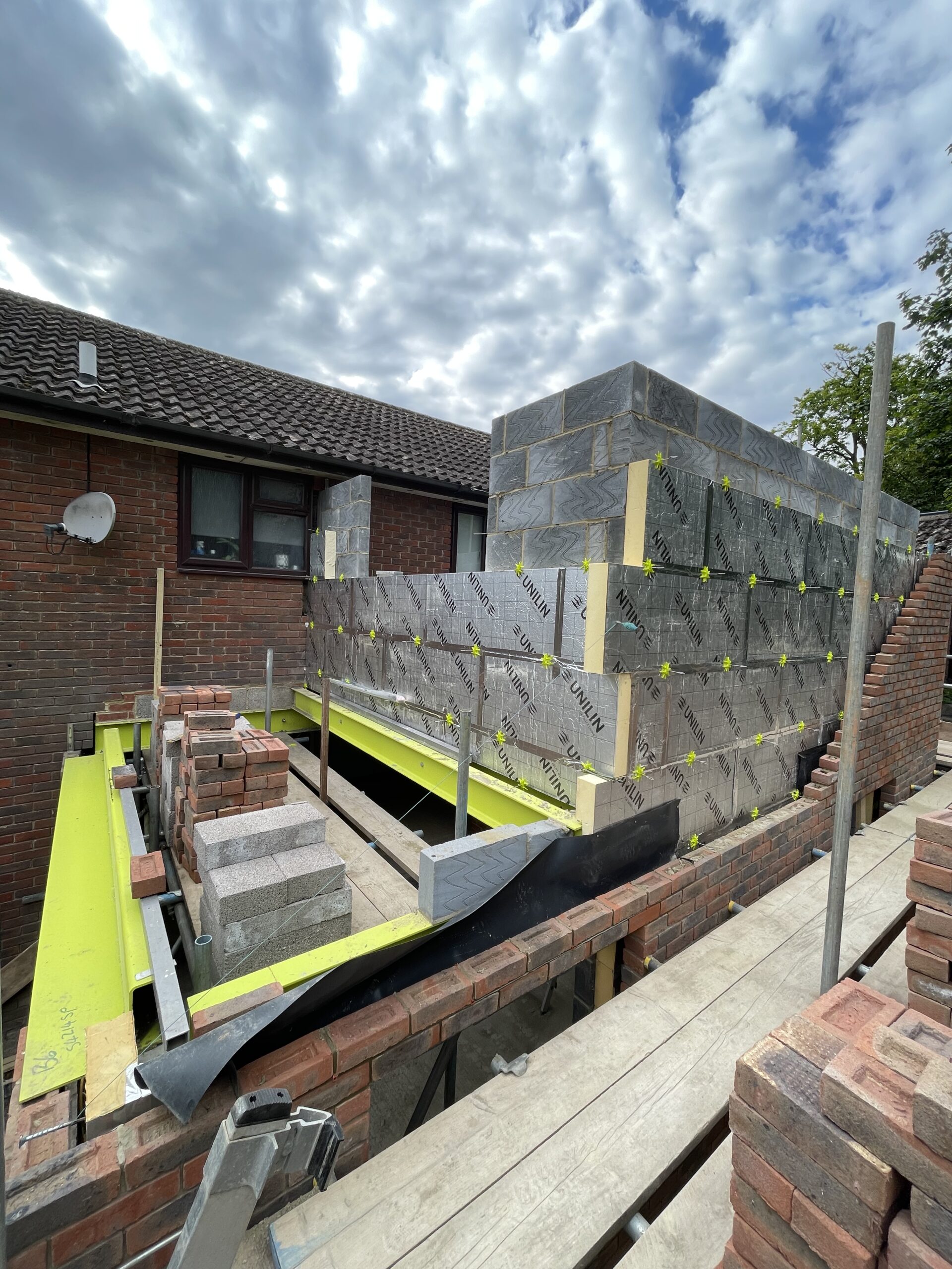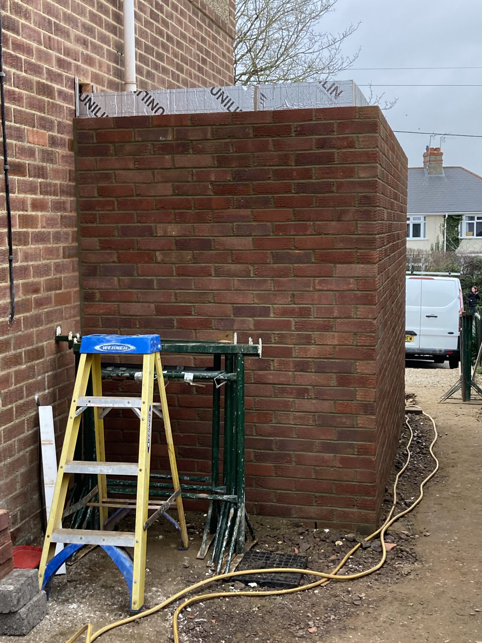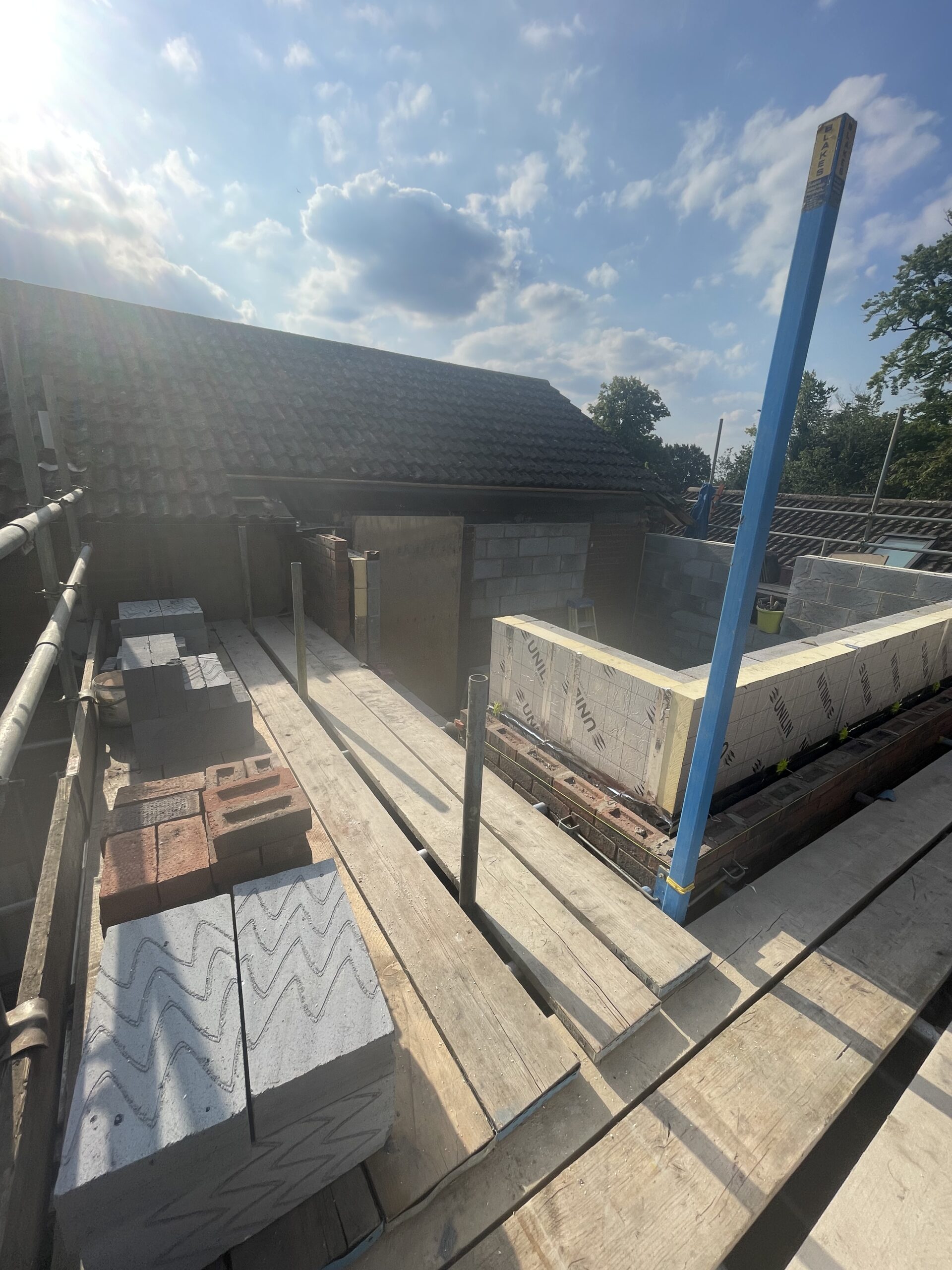 Rear extension, removal of existing brick and block wall and installation of steelwork.